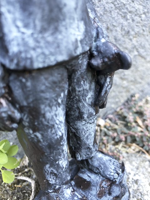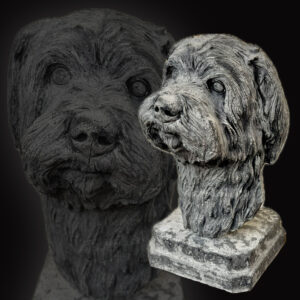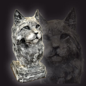 Steinguss in Bronzeoptik patiniert, Höhe 17cm, Gesamthöhe mit Sockel 19cm.